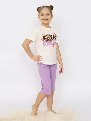 Пижама для девочки (футболка, шорты) лаванда