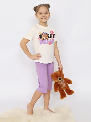 Пижама для девочки (футболка, бриджи) экрю