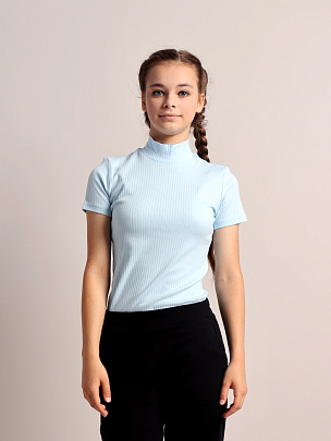 Водолазка из интерлока с разборой(лапша), с короткими рукавами и воротником-стойкой.
