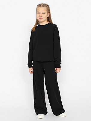 Стильный базовый спортивный костюм в стиле оверсайз (свободный крой) состоит из 2-х предметов: укороченный свитшот и брюки-палаццо с завышенной талией и расклешенные снизу. Костюм для женщин выполнен из футера без начеса. Элементы костюма можно носить как самостоятельные вещи. Укороченный свитшот можно комбинировать с джинсами, брюками, лосинами. Брюки-палаццо отлично смотрятся с футболкой, худи, топом или лонгсливом.