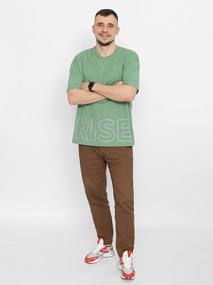 Футболка мужская с коротким рукавом. Вырез горловины круглый, обработан притачной планкой из рибаны с лайкрой.