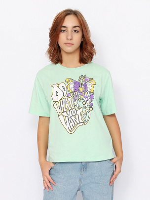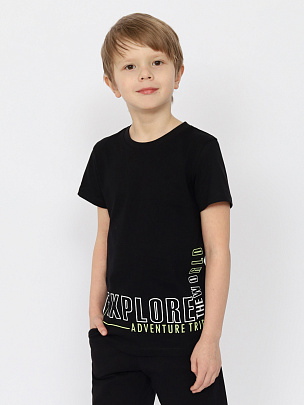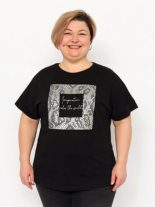 Футболка женская, из тонкого хлопкового трикотажа, украшена принтом.