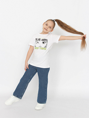 Футболка с коротким рукавом. Горловина круглая, обработана узким воротником из полотна с эластаном. Перед оформлен принтом.